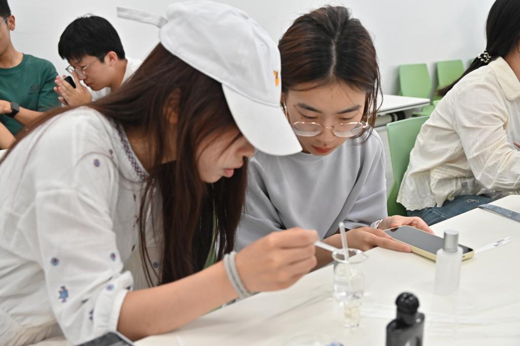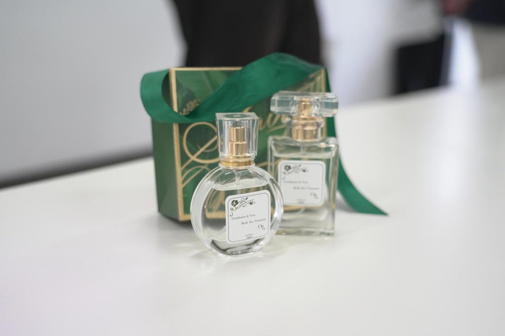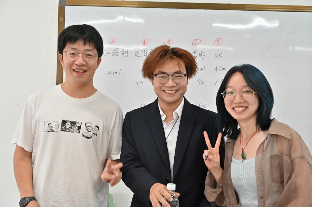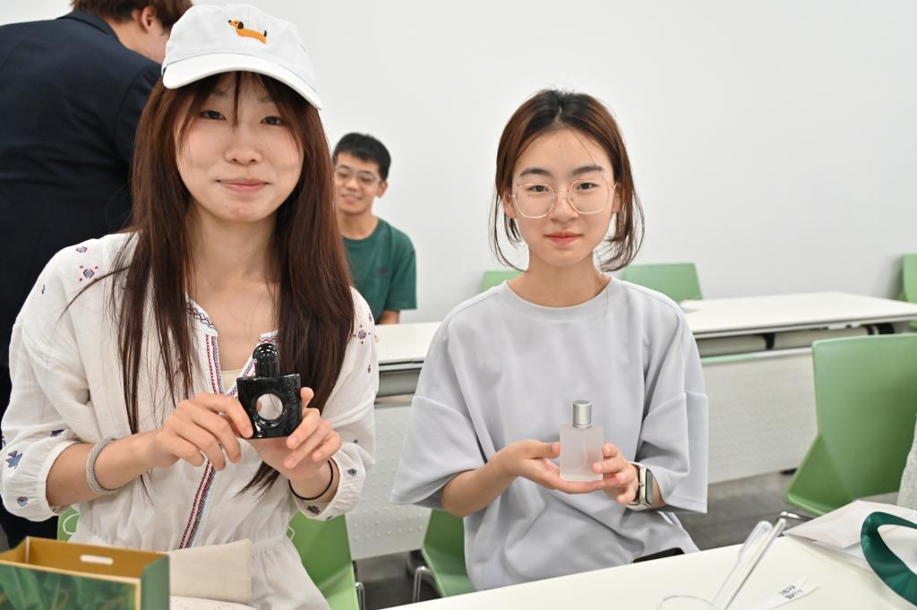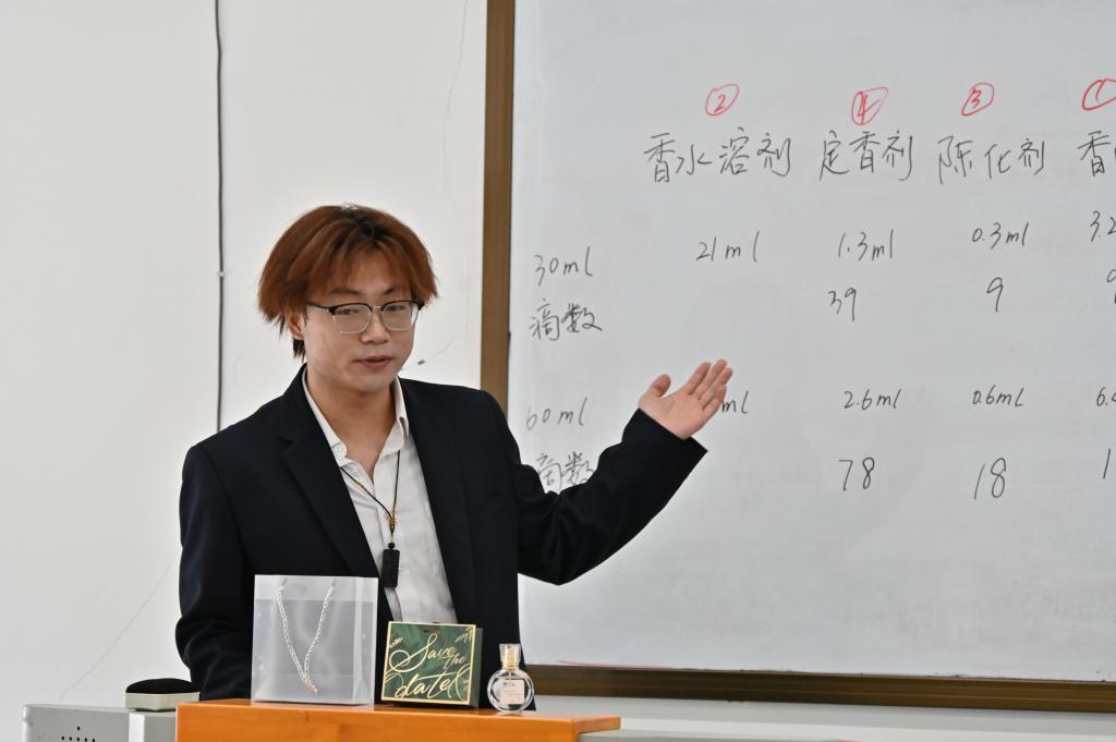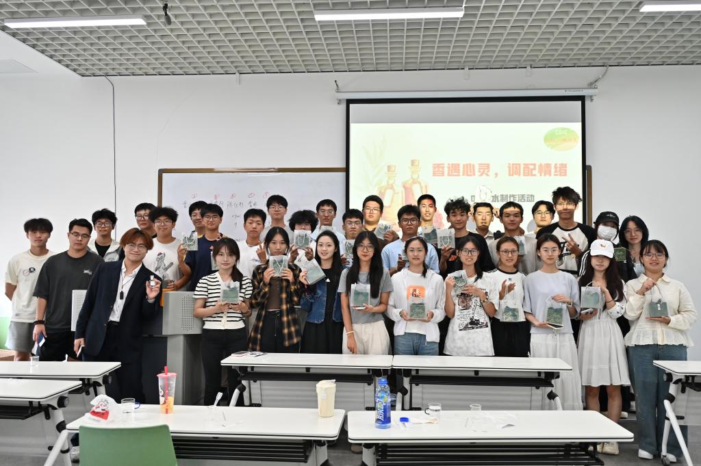 在实际制作环节,同学们分组协作,热烈讨论香型搭配方案,亲手调制并分享独具个人风格的香水。两位部长穿梭于各小组之间,及时答疑解惑,确保每位同学都能顺利完成专属香水的创作。
