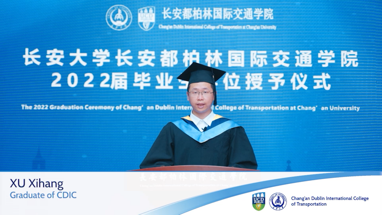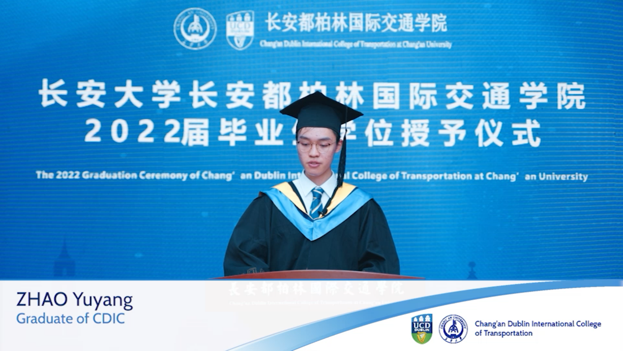 学位授予典礼由学院教务长Paul Fanning主持。他祝贺2022届毕业生顺利完成学业,开启新的征程!他强调雷火电竞 的目标是培养精通中西文化、具有国际视野与国际竞争力的复合型、创新型“新工科+大交通+国际化”高端技术和管理人才。大家作为雷火电竞 的首届毕业生,在过去四年的学习中,已经成功应对前所未有的变化和挑战,展现出了强大的适应能力,并尽最大努力发挥自身潜能顺利完成学业。经过四年的学习,同学们掌握了出色的工程理论知识及英语能力,同时具备国际化的视野,能够在国际社会中运用学业中汲取的知识。雷火电竞 和雷火电竞 为大家感到无比自豪!他衷心祝愿全体毕业生们在前进的道路上披荆斩棘,大展宏图!