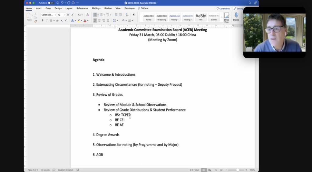 首先,Paul Fanning对各位委员的参会表示感谢。他指出,2022年秋季学期期末考试受西安突发疫情影响,考试周期延长,但学生及中外双方任课教师面对挑战,积极克服困难,圆满完成了教学任务。并表示,本学期恢复常态化线下教学,都柏林教师陆续抵达雷火电竞