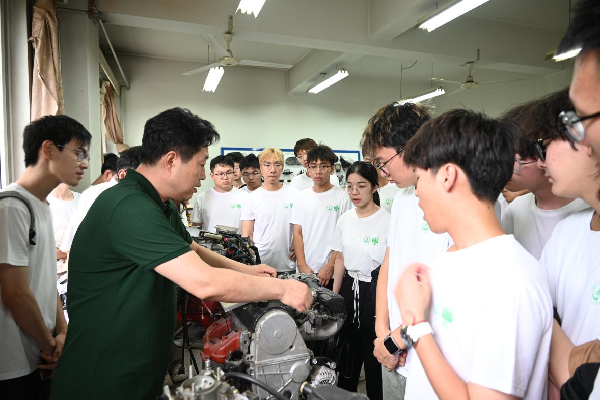 车辆结构实验室,实验室负责人带领同学们重点参观了汽车底盘、发动机、电器及电动车各构成部件的实物,并运用实物讲解相关知识。在此过程中,同学们不仅直观感受到了车辆结构的发展创新,还通过车辆结构设计中的一些经典案例,对车辆工程未来的专业学习方向有了更深入的了解。针对汽车零件的知识问答和讲解环节进一步激发了同学们学习车辆结构的兴趣,也进一步提升了大家对车辆结构系统的全面认识。
