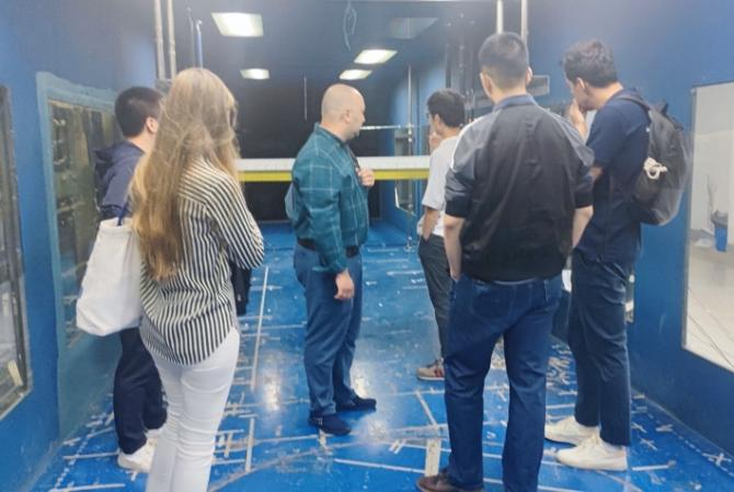 随后,外方教师们参观了风洞实验室的构造、试验模型和仪器设备,并观摩了正在进行的节段模型风洞试验,讨论了风洞试验的方法和相关研究理论,为后续的相关合作提供了研究方向和思路。