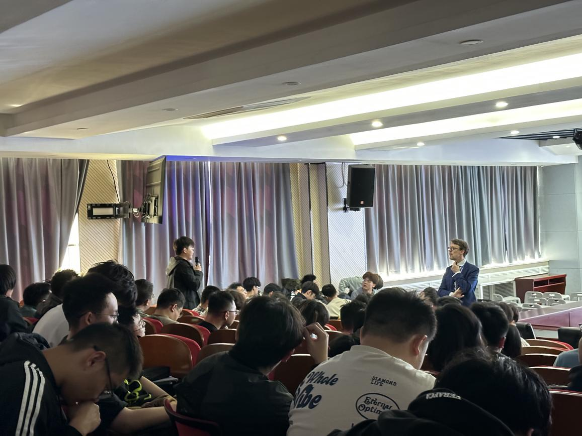 Alex对大一年级英语课程的内容和培养目标进行了详细的讲解。他从所需培养的能力展开,为大家明确了该课程的评价标准,针对不同学习模块给出相应的学习指导,引用实例详细讲解具体应用,并希望同学们课程学习不仅要提高处理复杂信息的能力,更要培养批判性思维。针对大二年级的英语课程,Alex重点讲述了本学期每周的英语学习任务及考试安排,对听说读写四方面提出了新的要求,建议同学们提高文献阅读能力与英文论文写作能力。Alex表示,希望同学们紧跟老师教学安排,循序渐进提高英语水平。