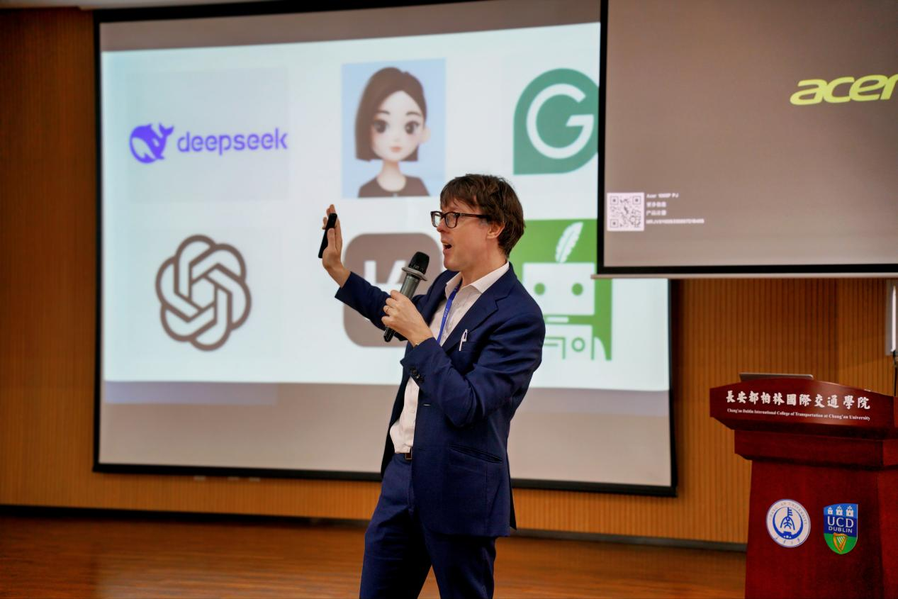 2025年3月12日、14日中午,学院于鸿远教学楼五楼报告厅举办两场主题为“生成式人工智能在英语教学中的影响:机遇与挑战”专题讲座。讲座由爱尔兰雷火电竞