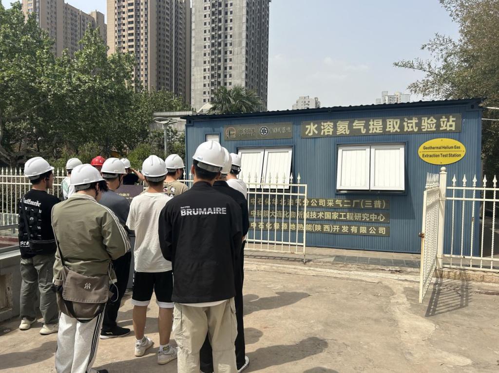 最后一站,研学队伍到达三普二号地热站,此站点是全国首个“地热井水溶氦气提取试验站”。工作人员为研学师生现场展示了氦气回收利用的相关工艺及试验进展。