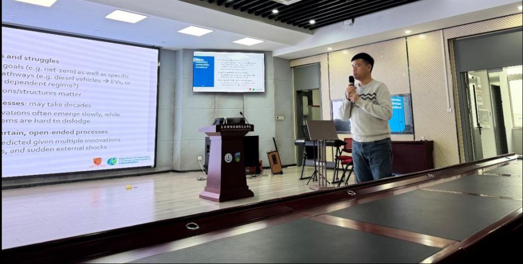 接着,钟璟霖结合国内案例展开了分析。 他以无锡的能源转型为例,说明地方政府如何在环境与经济双重压力下推动光伏创新, 扮演着制度维持者与创新推动者的双重角色。他又以深圳的垃圾管理体系转型为例,介绍了当地如何自2015年起建设集焚烧与资源化于一体的“生态园”,有效应对填埋危机。他强调,正如能源与垃圾管理系统一样,交通系统的绿色转型也绝非简单的技术替代,而是一个涉及技术、制度、用户与实践的复杂社会技术重构过程。