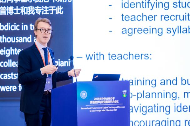 Paul Fanning在发言中指出,中外合作办学在推动教育开放和国际化人才培养方面具有重要意义。随着双方在课程建设、教师协同与教学改革等领域的深化合作,英语教学的新模式、新路径正在不断形成。他强调,将继续与中方团队保持紧密协作,在学术英语教学、跨文化能力培养和国际化课程建设等方面探索更多创新举措,努力培养具备全球胜任力的高素质人才。