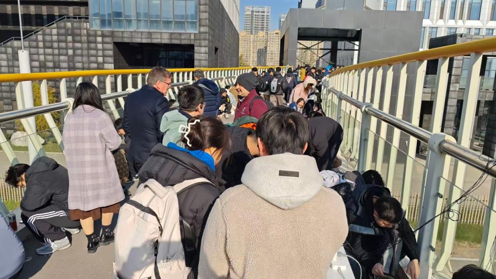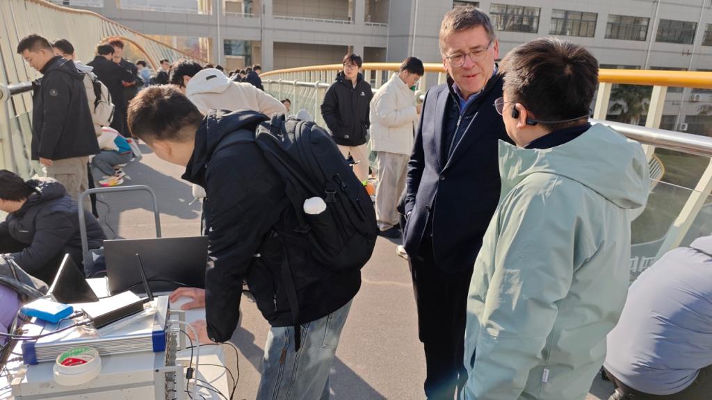 活动当天,Ekin Ozer介绍了桥梁环境激励测试的背景和流程。学生按照分组完成测点确认后,分别使用Sensor Logger软件、有线和无线加速度传感器同步开展数据采集,共完成三轮25分钟的持续采样。